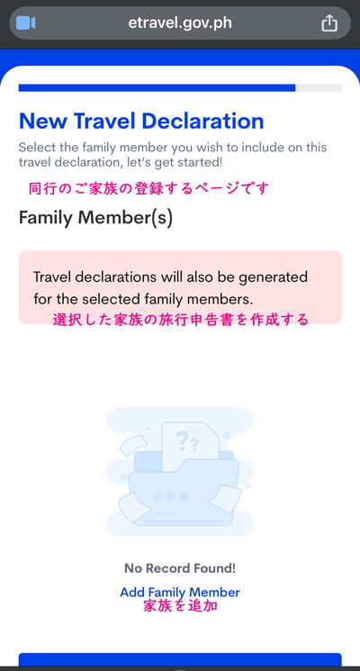 ご家族の登録をする方は、税関申告など済ませた後、最後の方にあります。